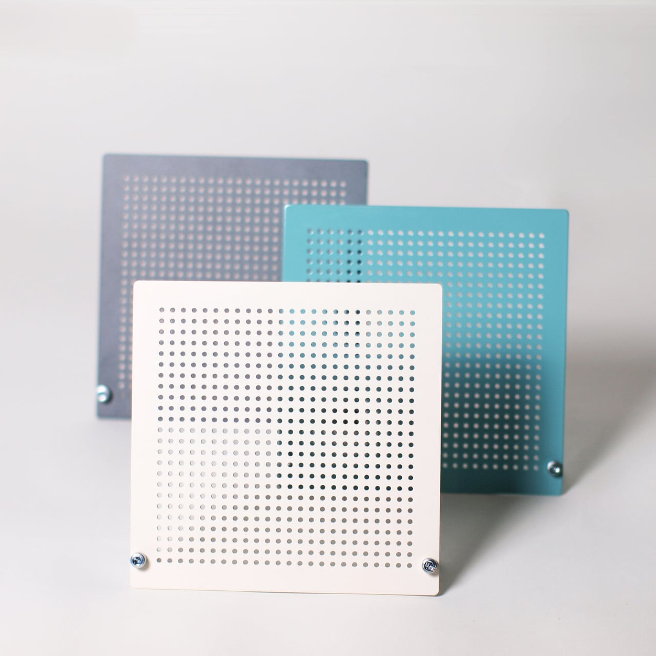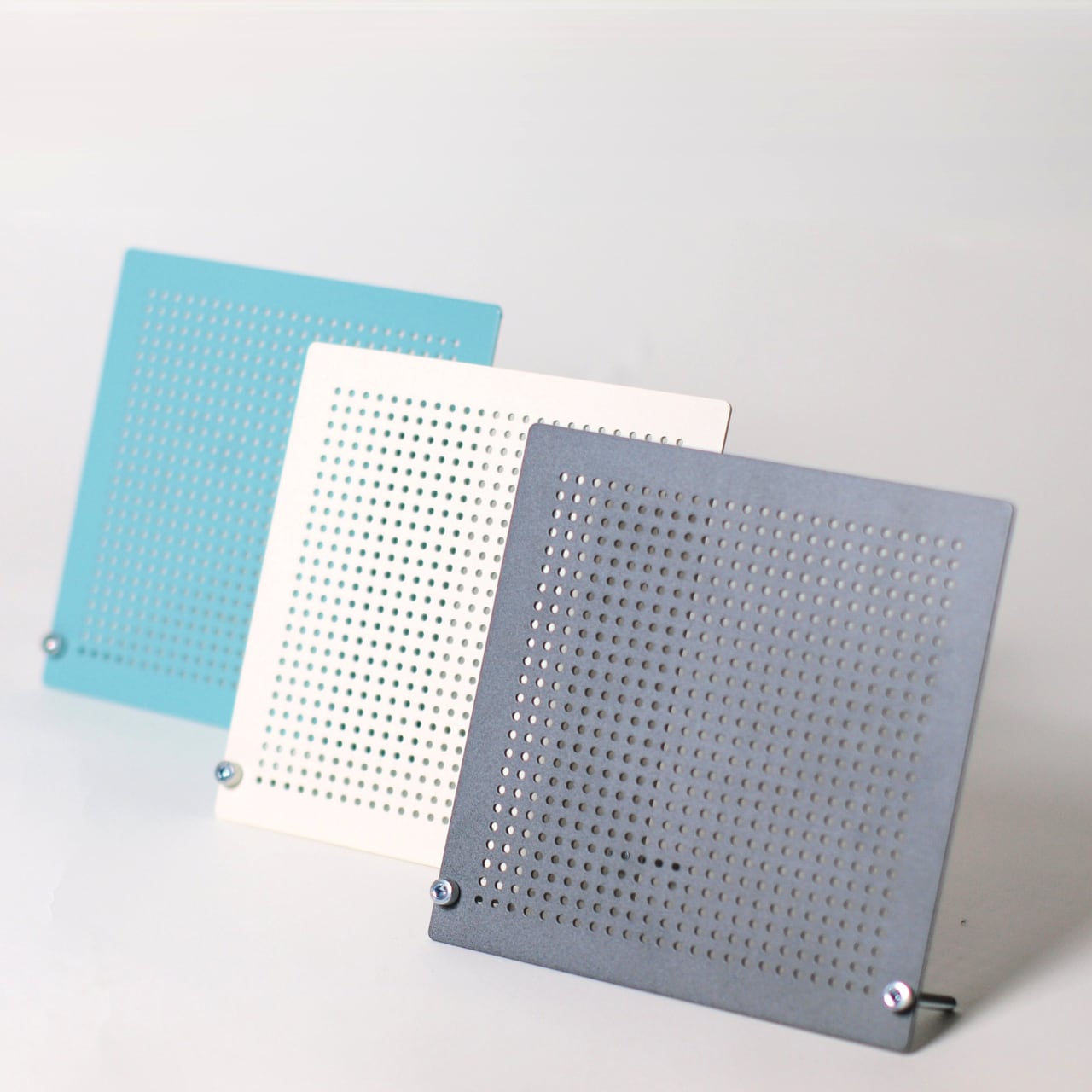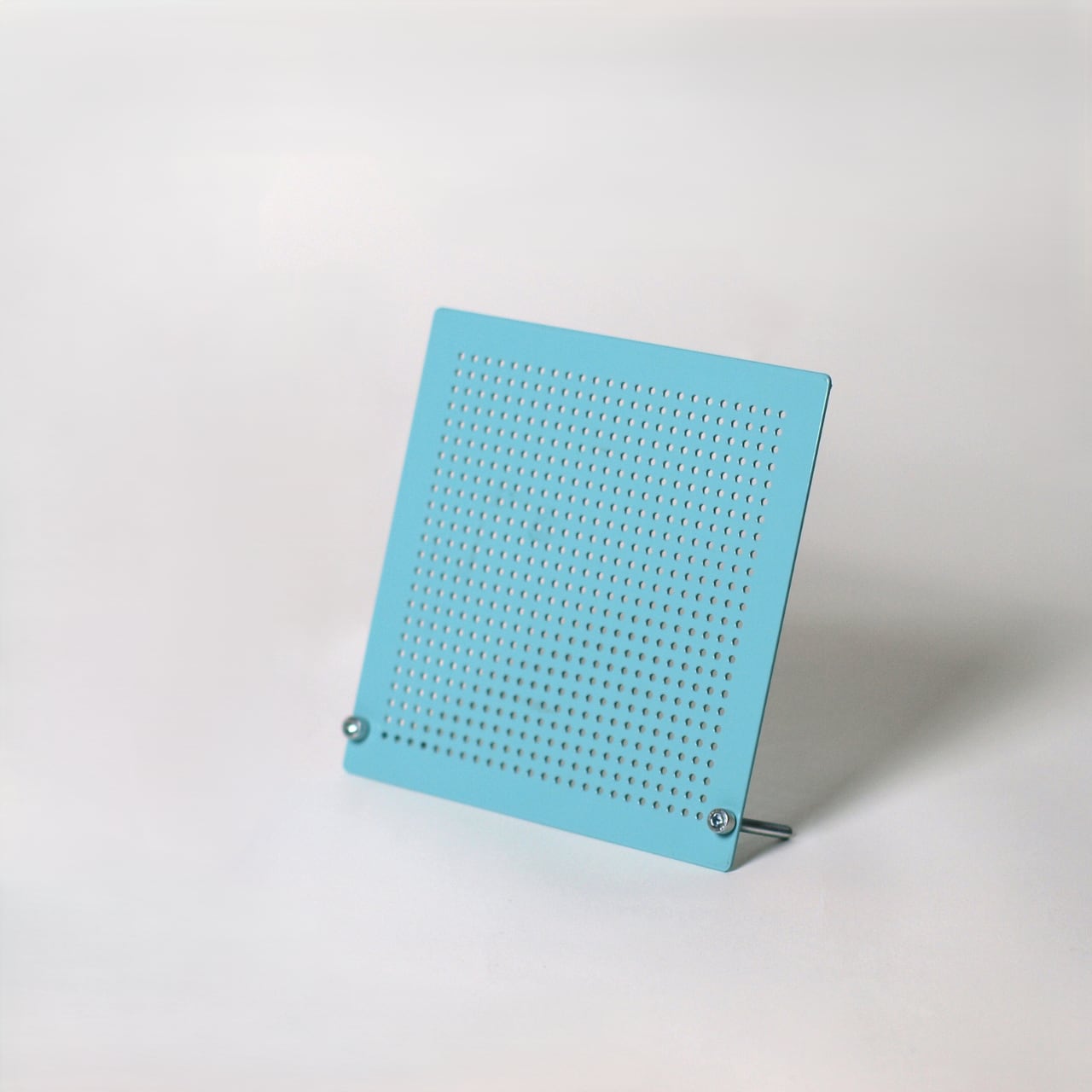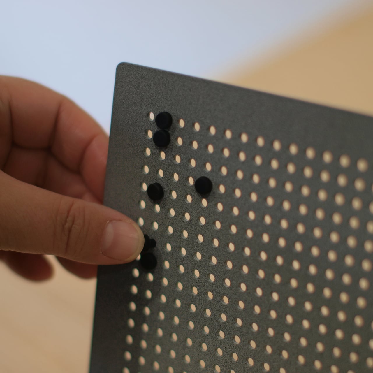 1粒ずつゴム製のドットを抜き差しすることで、自由に表示を変えることのできるドットマトリクスな看板の卓上サイズです。
