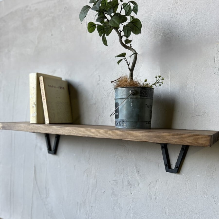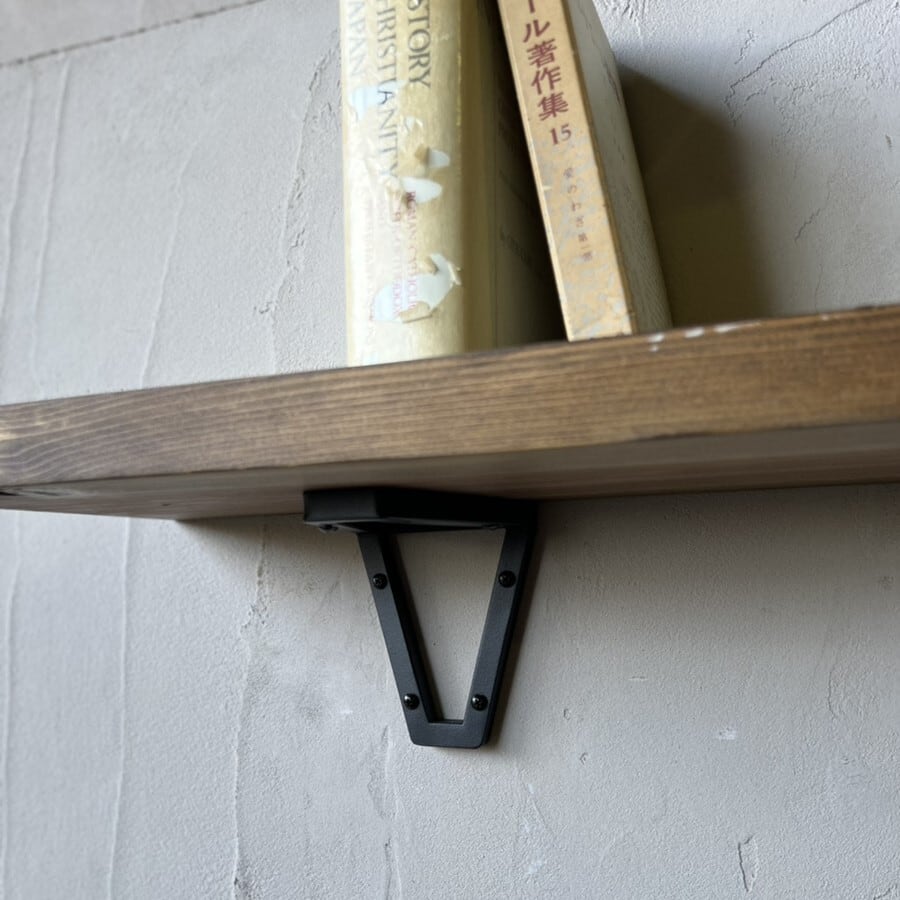 壁面に直付けタイプの棚受ブラケットです。他にはないデザインで壁面のアクセントとなり、リノベーションやDIYなどに適しています。